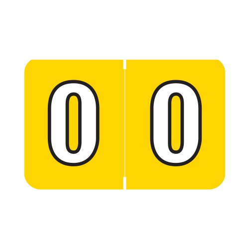 These are Colwell Jewel Tone compatible “0” numeric labels. Each label wraps around the end of a file folder to label that folder for numerical filing. They feature a wrap-around solid yellow color bar with a solid white “0”. The “0” will be visible on each side of the folder when applied. Each label is 1-1/2″ wide and 1″ high. Labels are laminated and sold in rolls of 500.