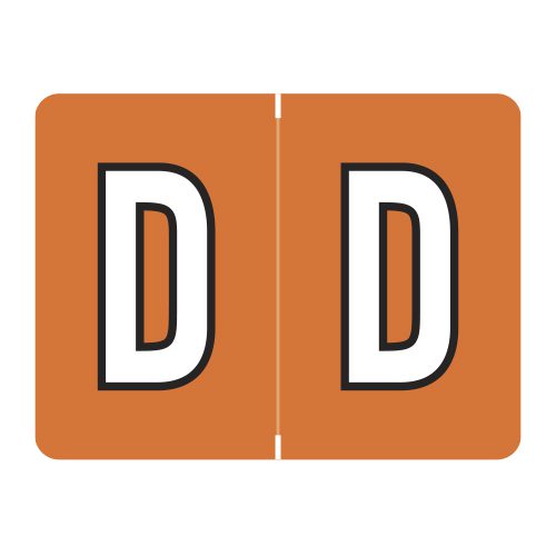 These are Datafile Compatible Letter “D” Alpha Labels. Each label wraps around the end of a file folder to label that folder for alphabetical filing. These labels are solid dark orange with a double white letter “D” character. The “D” will be visible on each side of the folder when applied. Each label is 15/16″ Wide x 1-1/2″ high. Labels are laminated and sold in roll of 500.