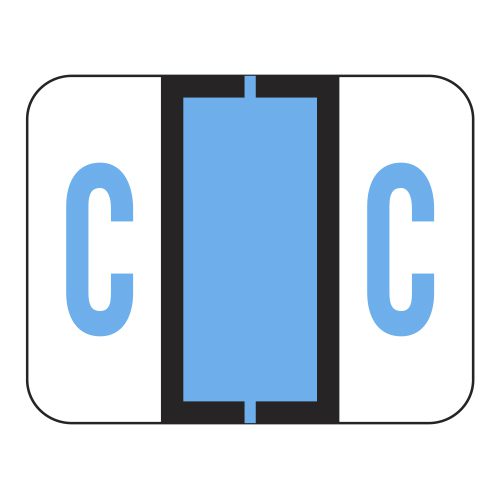 These are File Doctor compatible letter “C” alpha labels. Each label wraps around the end of a file folder to label that folder for alphabetical filing. These alphabetic labels feature a wrap-around solid bar and a blue colored “C” printed on a white background. The “C” will be visible on each side of the folder when applied. Each label is 1-1/4″ wide and 1″ high. Labels are laminated and sold in rolls of 500.