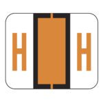 These are File Doctor compatible letter “I” alpha labels. Each label wraps around the end of a file folder to label that folder for alphabetical filing. These alphabetic labels feature a wrap-around solid bar and a fluorescent orange colored “I” printed on a white background. The “I” will be visible on each side of the folder when applied. Each label is 1-1/4″ wide and 1″ high. Labels are laminated and sold in rolls of 500.