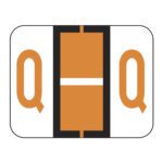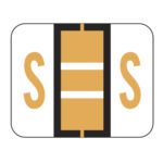 These are File Doctor compatible letter “R” alpha labels. Each label wraps around the end of a file folder to label that folder for alphabetical filing. These alphabetic labels feature a wrap-around solid bar and a brown colored “R” printed on a white background. The “R” will be visible on each side of the folder when applied. Each label is 1-1/4″ wide and 1″ high. Labels are laminated and sold in rolls of 500.