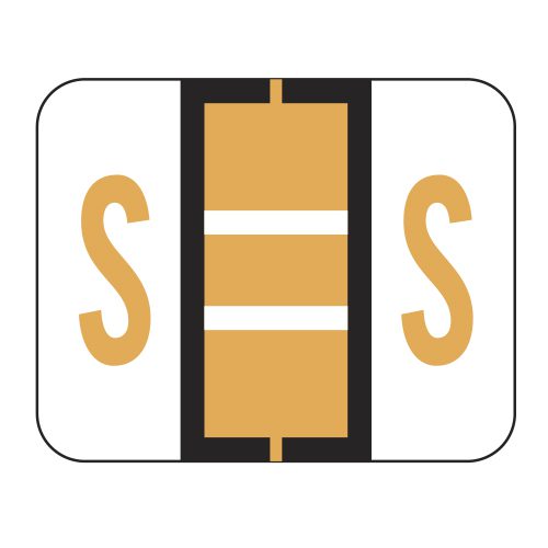 These are File Doctor compatible letter “S” alpha labels. Each label wraps around the end of a file folder to label that folder for alphabetical filing. These alphabetic labels feature a wrap-around solid bar and a fluorescent orange colored “S” printed on a white background. The “S” will be visible on each side of the folder when applied. Each label is 1-1/4″ wide and 1″ high. Labels are laminated and sold in rolls of 500.