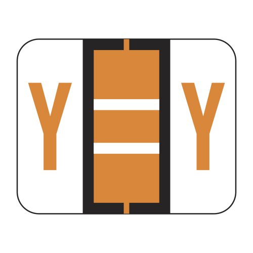 These are File Doctor compatible letter “Y” alpha labels. Each label wraps around the end of a file folder to label that folder for alphabetical filing. These alphabetic labels feature a wrap-around solid bar and a orange colored “Y” printed on a white background. The “Y” will be visible on each side of the folder when applied. Each label is 1-1/4″ wide and 1″ high. Labels are laminated and sold in rolls of 500.