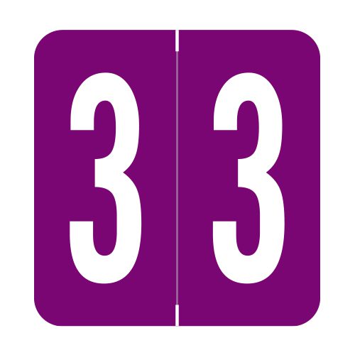 These are GBS compatible number “3” labels. Each label wraps around the end of a file folder to label that folder for numerical filing. They feature a wrap-around solid purple color bar with a solid white “3”. The number “3” will be visible on each side of the folder when applied. Each label is 1-5/16″ wide and 1-1/4″ high. Labels are laminated and sold per roll of 500.