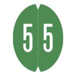 These are GBS compatible oval number “4” labels. Each label wraps around the end of a file folder to label that folder for numerical filing. They feature a wrap-around solid orange color bar with a solid white “4”. The number “4” will be visible on each side of the folder when applied. Each label is 1-1/8″ wide and 1-1/2″ high. Labels are laminated and sold per roll of 500.