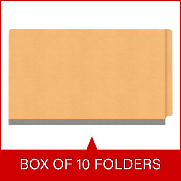 These gold legal size end tab classification folders are designed to allow you to divide your documents into multiple sections. THESE FOLDERS WILL NOT FIT IN FILE DRAWERS. These end tab classification folders are designed for filing on shelves. Whether they are active or inactive records, these folders are designed to stand up and last even in the most demanding environment. These folders feature dove gray Tyvek expansions which allow the file to expand as needed. These 18 pt. paper stock folders also feature two 18 pt manila divider with two bonded fasteners.