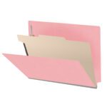 These orange letter size end tab classification folders are designed to allow you to divide your documents into multiple sections. THESE FOLDERS WILL NOT FIT IN FILE DRAWERS. These end tab classification folders are designed for filing on shelves. Whether they are active or inactive records, these folders are designed to stand up and last even in the most demanding environment. These folders feature dove gray Tyvek expansions which allow the file to expand as needed. These 18 pt. paper stock folders also feature a 18 pt manila divider with two bonded fasteners.