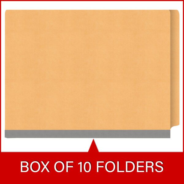 These gold letter size end tab classification folders are designed to allow you to divide your documents into multiple sections. THESE FOLDERS WILL NOT FIT IN FILE DRAWERS. These end tab classification folders are designed for filing on shelves. Whether they are active or inactive records, these folders are designed to stand up and last even in the most demanding environment. These folders feature dove gray Tyvek expansions which allow the file to expand as needed. These 18 pt. paper stock folders also feature two 18 pt manila divider with two bonded fasteners.