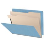 These gold letter size end tab classification folders are designed to allow you to divide your documents into multiple sections. THESE FOLDERS WILL NOT FIT IN FILE DRAWERS. These end tab classification folders are designed for filing on shelves. Whether they are active or inactive records, these folders are designed to stand up and last even in the most demanding environment. These folders feature dove gray Tyvek expansions which allow the file to expand as needed. These 18 pt. paper stock folders also feature two 18 pt manila divider with two bonded fasteners.