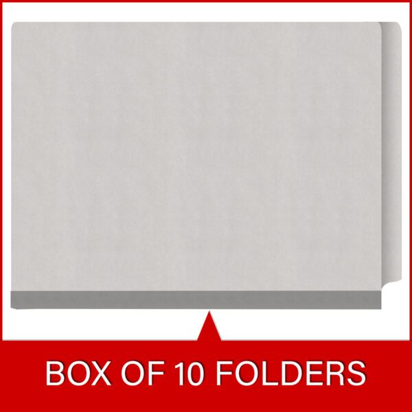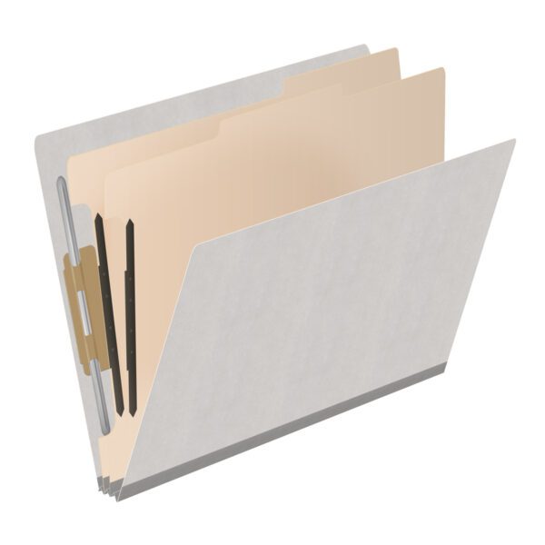 These grey letter size end tab classification folders are designed to allow you to divide your documents into multiple sections. THESE FOLDERS WILL NOT FIT IN FILE DRAWERS. These end tab classification folders are designed for filing on shelves. Whether they are active or inactive records, these folders are designed to stand up and last even in the most demanding environment. These folders feature dove gray Tyvek expansions which allow the file to expand as needed. These 18 pt. paper stock folders also feature two 18 pt manila divider with two bonded fasteners.