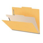 These top tab classification folders are designed to file in desks or cabinets with pull-out drawers. They are made of sturdy 18 pt. white paper stock folders also feature a 18 pt manila divider with two bonded fasteners for increased life and durability. Each folder comes with multiple filing sections to help you easily sub-divide your documents for better organization.