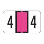 These are Jeter 0300 compatible number “5” labels. Each label wraps around the end of a file folder to label that folder for numerical filing. They feature a wrap-around solid yellow color bar and a black color number “5” printed on a white background. The number “5” will be visible on each side of the folder when applied. Each label is 1-5/8″ wide and 15/16″ high. Labels are laminated and sold per roll of 500.