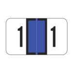 These are Jeter 2600 compatible number “0” labels. Each label wraps around the end of a file folder to label that folder for numerical filing. They feature a wrap-around solid blue color bar and a black color number “0” printed on a white background. The number “0” will be visible on each side of the folder when applied. Each label is 1-5/8″ wide and 15/16″ high. Labels are laminated and sold per roll of 500.