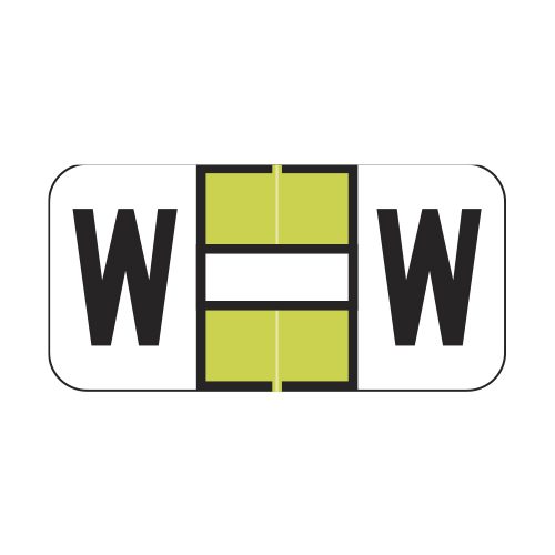 These are Jeter 2900 compatible letter “W” labels. Each label wraps around the end of a file folder to label that folder for alphabetical filing. These labels feature a wrap-around solid light green color bar and a colored “W” printed on a white background. The “W” will be visible on each side of the folder when applied. Each labels is 1-1/2″ wide and 3/4″ high. Labels are laminated and sold in rolls of 500.