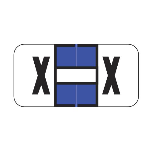 These are Jeter 2900 compatible letter “X” labels. Each label wraps around the end of a file folder to label that folder for alphabetical filing. These labels feature a wrap-around solid royal blue color bar and a colored “X” printed on a white background. The “X” will be visible on each side of the folder when applied. Each labels is 1-1/2″ wide and 3/4″ high. Labels are laminated and sold in rolls of 500.