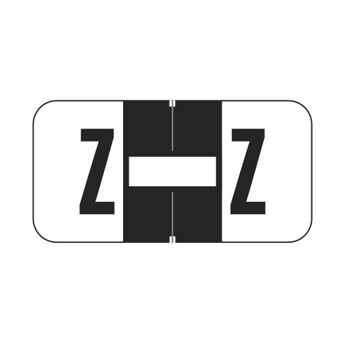 These are Jeter 2900 compatible letter “Z” labels. Each label wraps around the end of a file folder to label that folder for alphabetical filing. These labels feature a wrap-around solid black color bar and a colored “Y” printed on a white background. The “Y” will be visible on each side of the folder when applied. Each labels is 1-1/2″ wide and 3/4″ high. Labels are laminated and sold in rolls of 500.
