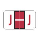 These are Jeter 5100 compatible letter “I” alpha labels. Each label wraps around the end of a file folder to label that folder for alphabetical filing. These labels feature a wrap-around solid bar and a colored letter “I” printed on a white background. The letter “I” will be visible on each side of the folder when applied. Each label is 1-5/8″ wide and 15/16″ high. Labels are laminated and sold in rolls of 500.