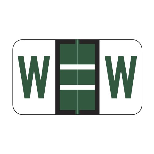 These are Jeter 5100 compatible letter “W” alpha labels. Each label wraps around the end of a file folder to label that folder for alphabetical filing. These labels feature a wrap-around solid bar and a colored letter “W” printed on a white background. The letter “W” will be visible on each side of the folder when applied. Each label is 1-5/8″ wide and 15/16″ high. Labels are laminated and sold in rolls of 500.