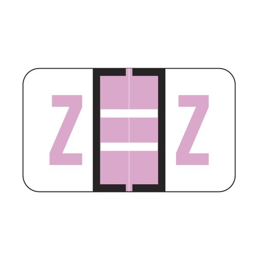 These are Jeter 5100 compatible letter “Z” alpha labels. Each label wraps around the end of a file folder to label that folder for alphabetical filing. These labels feature a wrap-around solid lilac bar and a colored letter “Z” printed on a white background. The letter “Z” will be visible on each side of the folder when applied. Each label is 1-5/8″ wide and 15/16″ high. Labels are laminated and sold in rolls of 500.