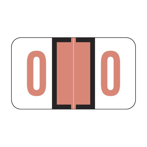 These are Jeter 6100 compatible number “0” labels. Each label wraps around the end of a file folder to label that folder for numerical filing. They feature a wrap-around solid pink color bar and a matching color number “0” printed on a white background. The number “0” will be visible on each side of the folder when applied. Each label is 1-5/8″ wide and 15/16″ high. Labels are laminated and sold per roll of 500.