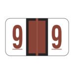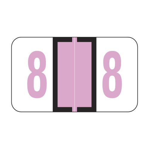These are Jeter 6100 compatible number “8” labels. Each label wraps around the end of a file folder to label that folder for numerical filing. They feature a wrap-around solid color bar and a matching color number “8” printed on a white background. The number “8” will be visible on each side of the folder when applied. Each label is 1-5/8″ wide and 15/16″ high. Labels are laminated and sold per roll of 500.