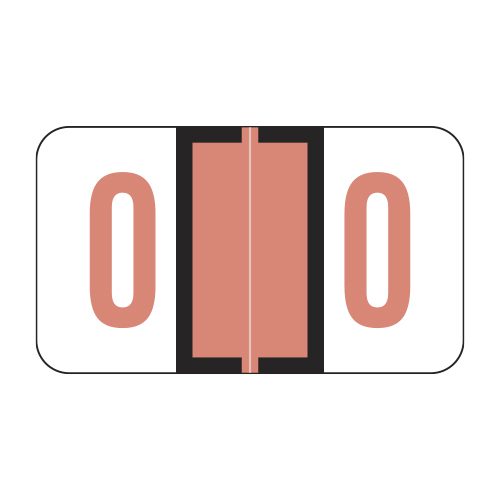 These are Jeter 6190 compatible number “0” labels. Each label wraps around the end of a file folder to label that folder for numerical filing. They feature a wrap-around solid pink color bar and a matching color number “0” printed on a white background. The number “0” will be visible on each side of the folder when applied. Each label is 1-5/8″ wide and 15/16″ high. Labels are laminated and sold per roll of 500.