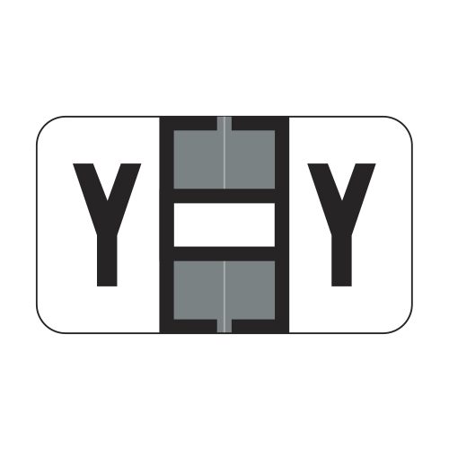 - Each label features a solid gray bar and a solid black “Y” on a white background on each side of the label.