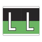 These are Kardex PSF-139 compatible letter alpha labels. Each label wraps around the end of a file folder to label that folder for alphabetical filing. These alphabetic labels feature a wrap-around solid bar and a colored letter “M” printed on a brown background. The letter will be visible on each side of the folder when applied. Each label is 1-1/2″ wide and 1-1/4″ high. Labels are laminated and sold in rolls of 500.