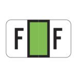 These are POS compatible letter “E” alpha ringbook sheets. Each label wraps around the end of a file folder to label that folder for alphabetical filing. These labels feature a wrap-around solid yellow bar and a colored letter “E” printed on a white background. The letter “E” will be visible on each side of the folder when applied. Each label is 1-5/8″ wide and 15/16″ high. Labels are laminated and sold in Roll of 240.