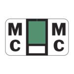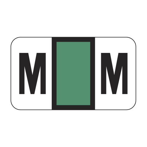 These are POS compatible letter “M” alpha ringbook sheets. Each label wraps around the end of a file folder to label that folder for alphabetical filing. These labels feature a wrap-around solid dark green bar and a colored letter “M” printed on a white background. The letter “M” will be visible on each side of the folder when applied. Each label is 1-5/8″ wide and 15/16″ high. Labels are laminated and sold in Roll of 240.