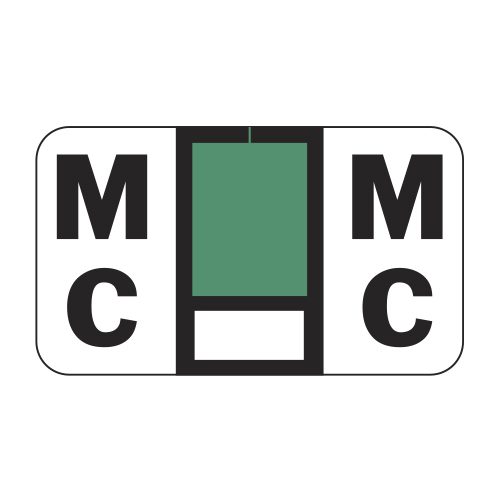 These are POS compatible letter “Mc” alpha ringbook sheets. Each label wraps around the end of a file folder to label that folder for alphabetical filing. These labels feature a wrap-around solid dark green bar and a colored letter “Mc” printed on a white background. The letter “Mc” will be visible on each side of the folder when applied. Each label is 1-5/8″ wide and 15/16″ high. Labels are laminated and sold in Roll of 240.