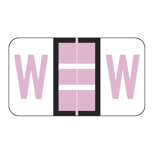 These are POS compatible letter “W” alpha ringbook sheets. Each label wraps around the end of a file folder to label that folder for alphabetical filing. These labels feature a wrap-around solid lilac bar and a colored letter “W” printed on a white background. The letter “W” will be visible on each side of the folder when applied. Each label is 1-5/8″ wide and 15/16″ high. Labels are laminated and sold in Roll of 240.