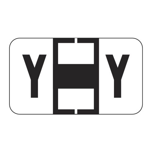 These are POS compatible letter “Y” alpha ringbook sheets. Each label wraps around the end of a file folder to label that folder for alphabetical filing. These labels feature a wrap-around solid white bar and a colored letter “Y” printed on a white background. The letter “Y” will be visible on each side of the folder when applied. Each label is 1-5/8″ wide and 15/16″ high. Labels are laminated and sold in Roll of 240.