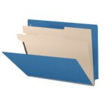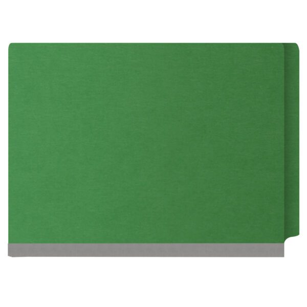 These end tab pressboard classification folders are designed to allow you to divide your documents into multiple sections. THESE FOLDERS WILL NOT FIT IN FILE DRAWERS. These end tab classification folders are designed for filing on shelves. Whether they are active or inactive records, pressboard folders are designed to stand up and last even in the most demanding environment. All pressboard products feature spring green Tyvek expansions which allow the file to expand as needed. These 25 pt moss green pressboard folders also feature two 18 pt manila dividers with two bonded fasteners.