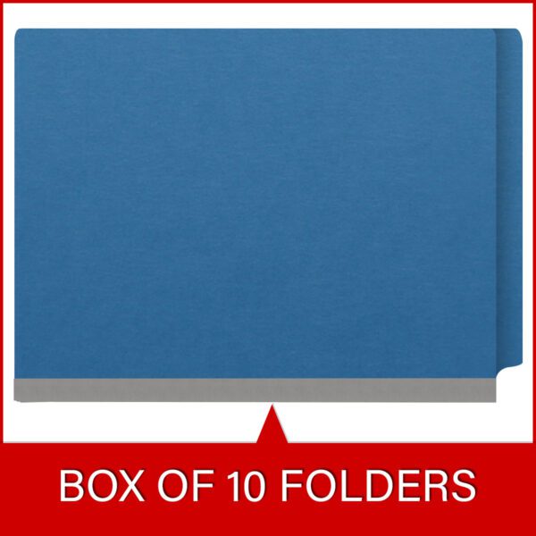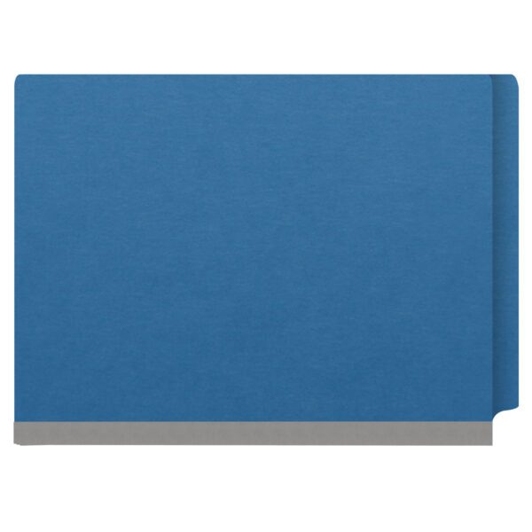 These end tab pressboard classification folders are designed to allow you to divide your documents into multiple sections. THESE FOLDERS WILL NOT FIT IN FILE DRAWERS. These end tab classification folders are designed for filing on shelves. Whether they are active or inactive records, pressboard folders are designed to stand up and last even in the most demanding environment. These pressboard products feature dark blue Tyvek expansions which allow the file to expand as needed. These 25 pt. royal blue pressboard folders also feature three 18 pt manila dividers with two bonded fasteners.