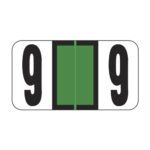 These are Reynolds & Reynolds compatible alternate numeric ringbook sheets. Each label wraps around the end of a file folder to label that folder for numerical filing. They feature a wrap-around solid color bar and a black numeric character printed on a white background. The number will be visible on each side of the folder when applied. Each label is 1-5/8″ wide and 7/8″ high. Labels are laminated and sold as 10 rolls of 500.
