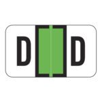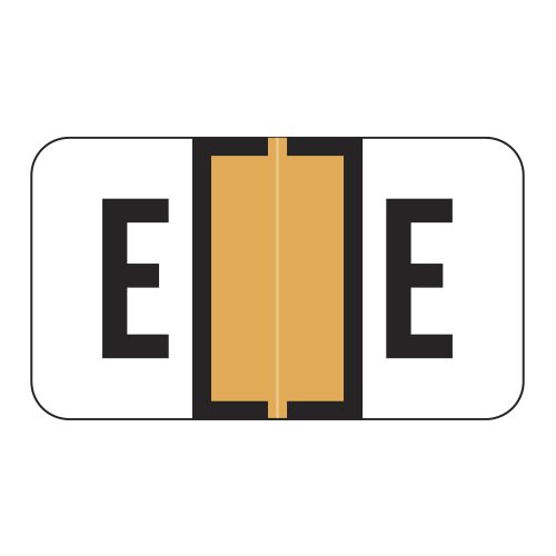 These are Safeguard 514 compatible letter “E” alpha labels. Each label wraps around the end of a file folder to label that folder for alphabetical filing. These labels feature a wrap-around solid bar and a colored letter “E” printed on a white background. The letter “E” will be visible on each side of the folder when applied. Each label is 1-5/8″ wide and 15/16″ high. Labels are laminated and sold in rolls of 500.