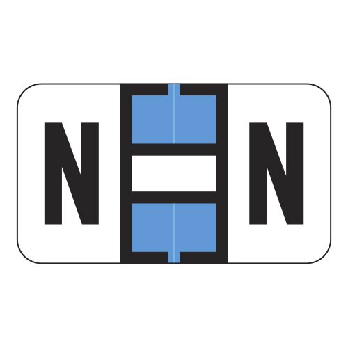 These are Safeguard 514 compatible letter “N” alpha labels. Each label wraps around the end of a file folder to label that folder for alphabetical filing. These labels feature a wrap-around solid bar and a colored letter “N” printed on a white background. The letter “N” will be visible on each side of the folder when applied. Each label is 1-5/8″ wide and 15/16″ high. Labels are laminated and sold in rolls of 500.