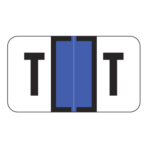 These are Safeguard 514 compatible letter “T” alpha labels. Each label wraps around the end of a file folder to label that folder for alphabetical filing. These labels feature a wrap-around solid bar and a colored letter “T” printed on a white background. The letter “T” will be visible on each side of the folder when applied. Each label is 1-5/8″ wide and 15/16″ high. Labels are laminated and sold in rolls of 500.