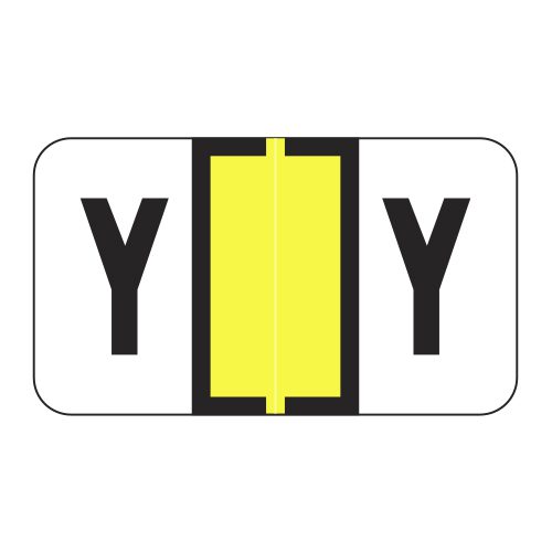 These are Safeguard 514 compatible letter “Y” alpha labels. Each label wraps around the end of a file folder to label that folder for alphabetical filing. These labels feature a wrap-around solid bar and a colored letter “Y” printed on a white background. The letter “Y” will be visible on each side of the folder when applied. Each label is 1-5/8″ wide and 15/16″ high. Labels are laminated and sold in rolls of 500.