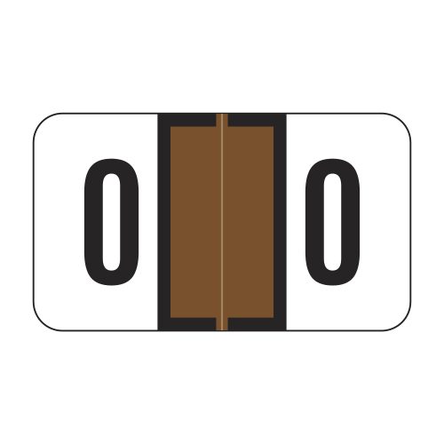 These are Safeguard compatible number “0” labels. Each label wraps around the end of a file folder to label that folder for numerical filing. They feature a wrap-around solid brown color bar and a black color number “0” printed on a white background. The number “0” will be visible on each side of the folder when applied. Each label is 1-5/8″ wide and 15/16″ high. Labels are laminated and sold per roll of 500.