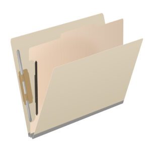 Made of sturdy 15 pt manila stock, these classification folders have three dividers to create eight filing sections. They are letter size and have two heat bonded fasteners in positions #1 and #3, as well as duo fasteners on the dividers. The Tyvek gusset makes them expandable up to 1-1/2″. Drawer filing is made simple with the 2/5 cut right-of-center top tab.