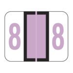 These are Smead BCCRN compatible number “9” labels. Each label wraps around the end of a file folder to label that folder for numerical filing. They feature a wrap-around solid brown color bar and a matching color “9” printed on a white background. The number “9” will be visible on each side of the folder when applied. Each label is 1-1/4″ wide and 1″ high. Labels are laminated and sold per roll of 500.