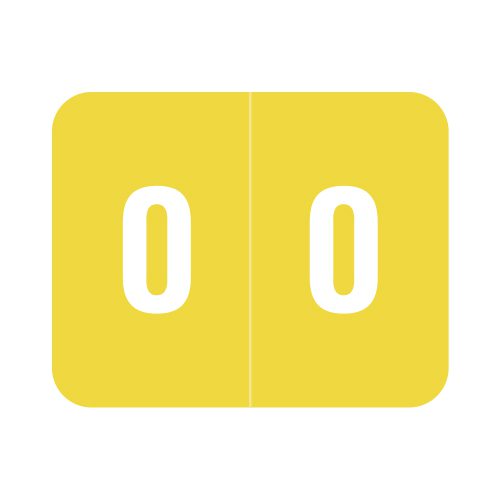 These are Smead DCCRN compatible number “0” labels. Each label wraps around the end of a file folder to label that folder for numerical filing. They feature a wrap-around solid yellow bar with a solid white number “0”. The number “0” will be visible on each side of the folder when applied. Each label is 1-1/2″ wide and 1-1/2″ high. Labels are laminated and sold in rolls of 500.