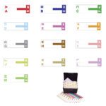 • Each label has a solid color wrap around bar with a letter on each side of the label.
