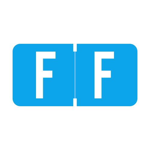 These are Tab 1278 Compatible letter “F” alpha labels. Each label wraps around the end of a file folder to label that folder for alphabetical filing. They feature a wrap-around solid blue bar with a solid “F” character. The letter “F” will be visible on each side of the folder when applied. Each label is 1″ wide and 1/2″ high. Labels are laminated and sold in rolls of 500.