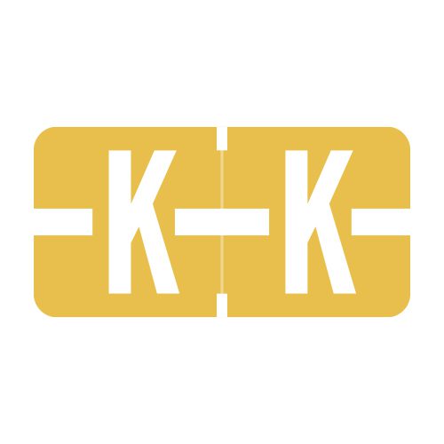 These are Tab 1278 Compatible letter “K” alpha labels. Each label wraps around the end of a file folder to label that folder for alphabetical filing. They feature a wrap-around solid light orange bar with a solid “K” character. The letter “K” will be visible on each side of the folder when applied. Each label is 1″ wide and 1/2″ high. Labels are laminated and sold in rolls of 500.