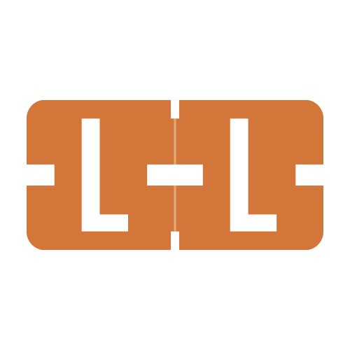 These are Tab 1278 Compatible letter “L” alpha labels. Each label wraps around the end of a file folder to label that folder for alphabetical filing. They feature a wrap-around solid dark orange bar with a solid “L” character. The letter “L” will be visible on each side of the folder when applied. Each label is 1″ wide and 1/2″ high. Labels are laminated and sold in rolls of 500.