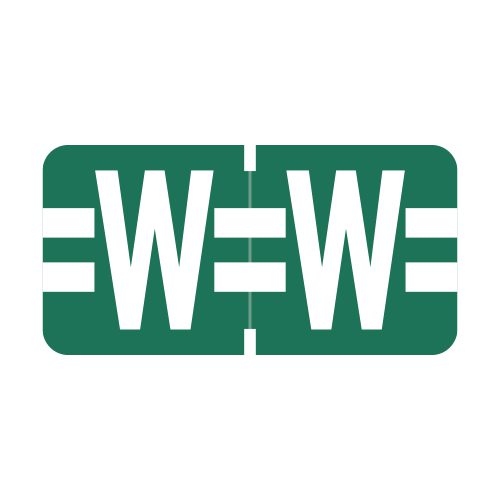These are Tab 1278 Compatible letter “W” alpha labels. Each label wraps around the end of a file folder to label that folder for alphabetical filing. They feature a wrap-around solid dark green bar with a solid “W” character. The letter “W” will be visible on each side of the folder when applied. Each label is 1″ wide and 1/2″ high. Labels are laminated and sold in rolls of 500.