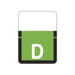 These are Tab 1307 Compatible letter “E” alpha labels. Each label wraps around the top of a file folder to label that folder for alphabetical filing. They feature a wrap-around solid dark green bar with a solid “E” character. The letter “E” will be visible on each side of the folder when applied. Each label is 1″ wide and 3/4″ high. Labels are laminated and sold in roll of 500.